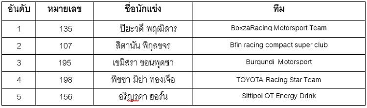 ผลการแข่งขัน “YARIS ONE MAKE RACE” ดิวิชั่น 1