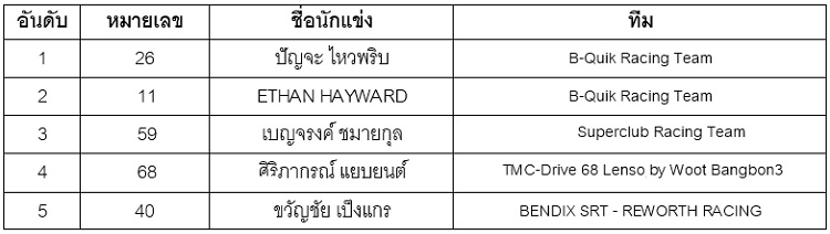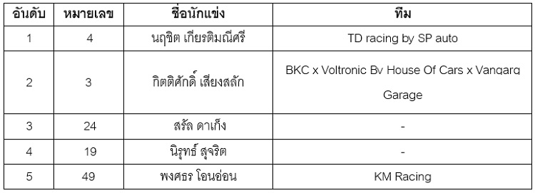 ปัญจะ ไหวพริบ จากทีม B-Quik Racing Team คว้าตำแหน่งแชมป์ในดิวิชัน 1 ประจำสนามนี้