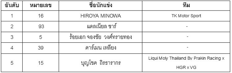 ในสนามแรกนี้ แชมป์ตกเป็นของ HIROYA MINOWA จากทีม TK Motor Sport
