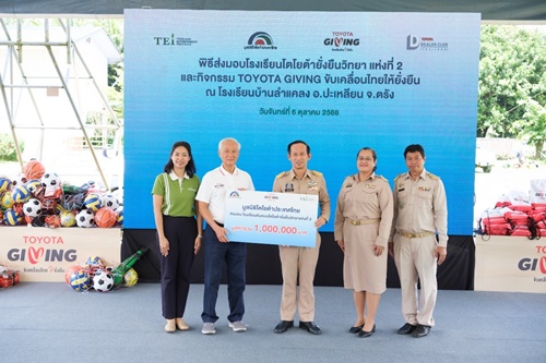 นายประมนต์ สุธีวงศ์ ประธานมูลนิธิโตโยต้าประเทศไทย พร้อมด้วย นายทรงกลด สว่างวงศ์ ผู้ว่าราชการจังหวัดตรัง ดร. ชุลีกร ทองด้วง ผู้อำนวยการสำนักงานเขตพื้นที่การศึกษาประถมศึกษาตรัง เขต 1 นางสาววิศรา หุ่นธานี ผู้อำนวยการฝ่ายมลพิษ พลังงาน และสิ่งแวดล้อม สถาบันสิ่งแวดล้อมไทย คณะกรรมการมูลนิธิโตโยต้าประเทศไทย คณะผู้บริหารบริษัท โตโยต้า มอเตอร์ ประเทศไทย จำกัด คณะผู้บริหารชมรมผู้แทนจำหน่ายโตโยต้า ร่วมเป็นเกียรติ ในพิธีส่งมอบโรงเรียนยั่งยืนวิทยา แห่งที่ 2 พร้อมมอบอุปกรณ์การเรียน และอุปกรณ์กีฬา ให้แก่นักเรียนในเครือข่าย กลุ่มโรงเรียนปะเหลียน เมื่อวันจันทร์ที่ 6 ตุลาคม พ.ศ.2568 ณ โรงเรียนบ้านลำแคลง จังหวัดตรัง