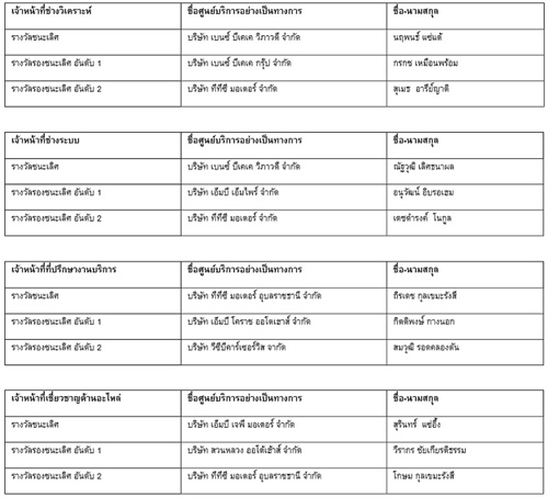 ในวันเดียวกันนั้น เมอร์เซเดส-เบนซ์ ประเทศไทย ได้จัดรอบชิงชนะเลิศของการแข่งขันทักษะการบริการลูกค้าระดับประเทศสำหรับปี 2568 โดยทุกศูนย์บริการอย่างเป็นทางการของเมอร์เซเดส-เบนซ์ได้มีส่วนร่วมในการแข่งขันทั้ง 2 ประเภท ได้แก่ การแข่งขันทักษะความเป็นเลิศของตำแหน่งงาน (CS Job profile) และการแข่งขันวางแผนธุรกิจและแคมเปญ (CS Campaign business plan) ผ่านการแข่งขันที่เข้มข้นและท้าทายหลายด้าน ซึ่งครอบคลุมทั้งการประเมินทางทฤษฎี การสอบภาคปฏิบัติผ่านการจำลองบทบาทสมมติ การแข่งขันตอบคำถามแบบเกมโชว์เสริมความรู้ในรอบชิงชนะเลิศ และการนำเสนอแผนธุรกิจ ซึ่งการแข่งขันนี้มีเป้าหมายเพื่อยกระดับความเชี่ยวชาญเฉพาะทางและการทำงานร่วมกันในทีม เพื่อให้เราก้าวหน้าในการรักษาความพึงพอใจของลูกค้า โดยผู้ชนะเลิศสำหรับปี 2568 มีรายชื่อดังนี้