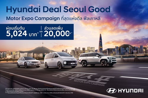 เกาหลีรุก! ปล่อยหมัดเด็ด “Hyundai Deal SEOUL Good” กับข้อเสนอ Motor Expo 2025 สู้ศึกเดือดปลายปี มอบที่สุดแห่งดีล ผ่อนเบา ๆ เริ่มต้น 5,024 บาทพร้อมส่วนลดออนท็อป! 20,000 บาท* เริ่มวันนี้ – 10 ธันวาคม 2568 เท่านั้น!