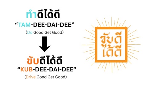 หวังเป็นอย่างยิ่งว่าแนวคิด ‘ขับดีได้ดี (KUB-DEE-DAI-DEE)’ จะได้รับการยอมรับอย่างอบอุ่นจากประชาชนชาวไทย และช่วยส่งต่อจิตสำนึกแห่งความเอื้อเฟื้อและความปลอดภัยให้แผ่ขยายระหว่างผู้ใช้รถยนต์และรถจักรยานยนต์”
