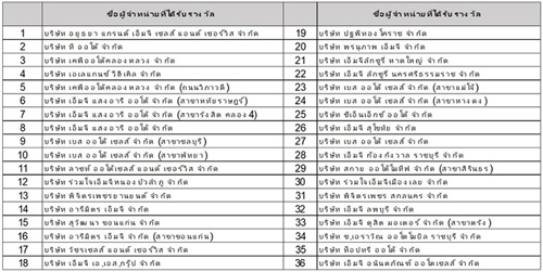 กลุ่มผู้จำหน่ายในเครือ บริษัท เอ็มจี กรุงเทพ จำกัด