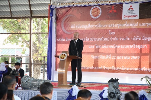 บริษัท มิตซูบิชิ มอเตอร์ส (ประเทศไทย) จำกัด เดินหน้าสนับสนุนการศึกษา และส่งเสริมการพัฒนาทักษะเชิงช่างอย่างต่อเนื่อง เป็นปีที่ 11 ตอกย้ำความมุ่งมั่นของบริษัทฯ ในการยกระดับมาตรฐานการศึกษาของประเทศไทย และส่งเสริมการเรียนรู้โดยผ่านการลงมือปฏิบัติจริง ร่วมกับผู้จำหน่าย บริษัท มิตซูอยุธยา (ไทยธาดา) จำกัด มอบเครื่องยนต์และชุดส่งกำลัง ให้แก่ วิทยาลัยเทคนิคพระนครศรีอยุธยา เพื่อใช้เป็นสื่อการเรียนการสอน มุ่งเปิดโอกาสให้นักศึกษาได้สัมผัสการเรียนรู้เทคโนโลยี และองค์ความรู้ทางเทคนิคที่ทันสมัย อันนำไปสู่การเพิ่มโอกาสสู่ความสำเร็จในสายงานและเป็นรากฐานสำคัญในการเติบโตในอุตสาหกรรมยานยนต์อย่างยั่งยืน
