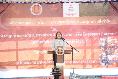 นางสาวมยุรี ศรีระบุตร ผู้อำนวยการวิทยาลัยเทคนิคพระนครศรีอยุธยา รักษาราชการแทนผู้อำนวยการสถาบันการอาชีวศึกษาภาคกลาง 1 กล่าวว่า “เราขอขอบคุณ มิตซูบิชิ มอเตอร์ส ประเทศไทย และผู้จำหน่าย บริษัท มิตซูอยุธยา (ไทยธาดา) จำกัด สำหรับการสนับสนุนเครื่องยนต์และชุดส่งกำลัง ซึ่งนับเป็นสื่อการเรียนการสอนที่มีคุณค่า