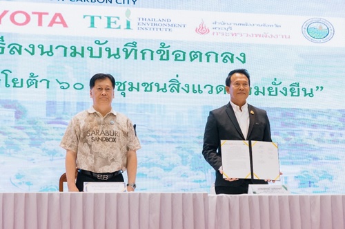 นายสุรภูมิ อุดมวงศ์ รองกรรมการผู้จัดการใหญ่ บริษัท โตโยต้า มอเตอร์ ประเทศไทย จำกัด พร้อมด้วย นางสาววิศรา หุ่นธานี ผู้อำนวยการฝ่ายมลพิษ พลังงาน และสิ่งแวดล้อม สถาบันสิ่งแวดล้อมไทย นายสุทธิพร คัมภีระ นายกเทศมนตรีตำบลห้วยป่าหวาย อำเภอพระพุทธบาท จังหวัดสระบุรี นายธีรชัย พงศ์ติณบุตร พลังงานจังหวัดสระบุรี ร่วมลงนามบันทึกข้อตกลงความร่วมมือ “โครงการสระบุรีแซนด์บ็อกซ์ รวมพลังสร้างเมืองคาร์บอนต่ำ แห่งแรกของประเทศไทย” โดยมี นายบัญชา เชาวรินทร์ ผู้ว่าราชการจังหวัดสระบุรี พร้อมด้วยตัวแทนจาก บริษัท สยามคูโบต้าคอร์ปอเรชั่น จํากัด และ บริษัท ซีพี แอ็กซ์ตร้า จำกัด (มหาชน) ร่วมเป็นสักขีพยาน ณ หอประชุมศูนย์ราชการจังหวัดสระบุรี อำเภอเมืองสระบุรี จังหวัดสระบุรี เมื่อวันที่ 22 มกราคม พ.ศ. 2569 ที่ผ่านมา