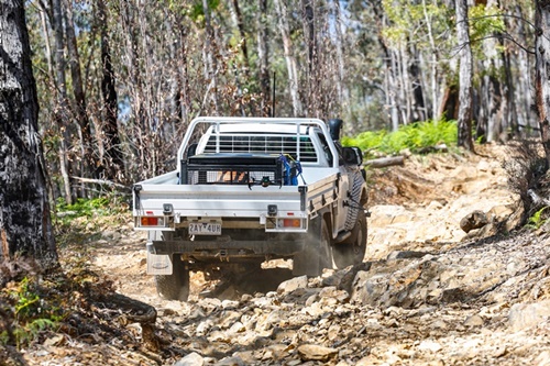 นอกเหนือจากสนามยู แยงส์ พรูฟวิ่ง กราวด์ ของฟอร์ดแล้ว ทีมวิศวกรได้เสาะหาเส้นทางระดับนักผจญภัยทั่วออสเตรเลีย เพื่อเฟ้นหาบททดสอบสุดโหด หนึ่งในนั้นคือเส้นทางที่ได้รับการขนานนามว่า ‘Rocky Track’4 ซึ่งเป็นเส้นทางสุดทรหดที่แคบจนแทบจะพอดีกับตัวรถ และเต็มไปด้วยหินขรุขระสูงชันและแหลมคม