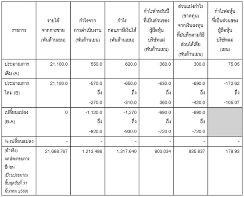 ผลประกอบการรวมสำหรับปีงบประมาณสิ้นสุดวันที่ 31 มีนาคม 2569 บริษัทฯ ได้ตัดสินใจไม่ปรับเปลี่ยน