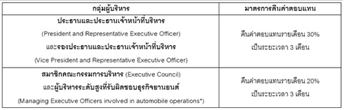 จากการปรับประมาณการผลประกอบการสำหรับปีงบประมาณสิ้นสุดวันที่ 31 มีนาคม 2569 และผลขาดทุนที่เกิดจากการทบทวนแผนกลยุทธ์ด้านยานยนต์ไฟฟ้า ผู้บริหารบางส่วนของฮอนด้า ได้ตัดสินใจคืนค่าตอบแทนรายเดือนโดยสมัครใจ สำหรับปีงบประมาณที่สิ้นสุดวันที่ 31 มีนาคม 2570 โดยมีรายละเอียดดังนี้