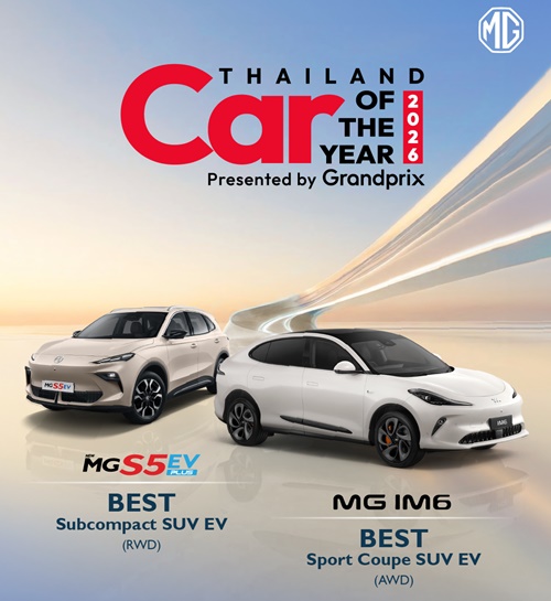 ทั้งนี้ เอ็มจี ได้รับรางวัล THAILAND’S MOST ADMIRED BRAND 2026 ในกลุ่มรถยนต์ไฟฟ้า (EV Car) ซึ่งรางวัลดังกล่าวมาจากผลสำรวจจากประชาชนทั่วทุกภูมิภาคของประเทศไทย สะท้อนถึงการเป็นแบรนด์ที่ได้รับการยอมรับและเชื่อมั่นจากผู้บริโภค นอกจากนี้ ยังสามารถคว้าอีก 2 รางวัลจาก THAILAND CAR OF THE YEAR 2026 กับยนตรกรรม 2 รุ่น โดย MG IM6 ซึ่งเป็น “The First ever Premium Intelligent e-SUV” ที่มาพร้อมเทคโนโลยีอัจฉริยะ ได้รับรางวัล BEST SPORT COUPE SUV EV (AWD) และ NEW MG S5 EV PLUS อีวีมหาชน กับจุดเด่น “ขับดี วิ่งไกล ชาร์จไว นั่งสบาย มี LIFETIME WARRANTY” ได้รับรางวัล BEST SUBCOMPACT SUV EV (RWD)