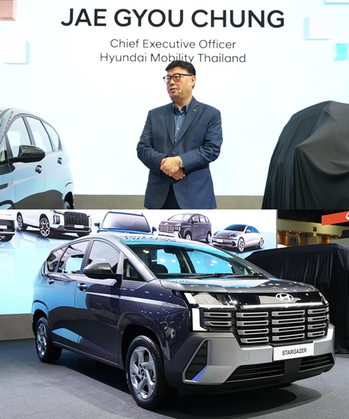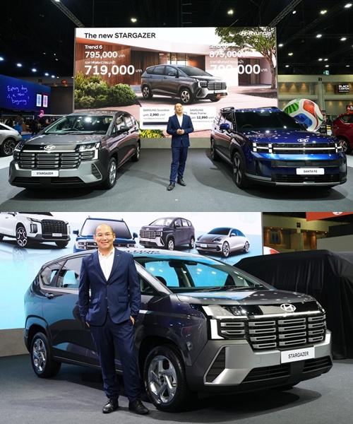 ขณะเดียวกัน ฮุนไดยังเปิดตัว Hyundai new STARGAZER รถยนต์ 6 ที่นั่ง 3 แถว รุ่นปรับโฉมใหม่ รถอเนกประสงค์ที่ออปชันความปลอดภัยครบสุดในคลาสด้วย Hyundai SmartSense มากถึง 13 ระบบ พัฒนาภายใต้แนวคิด “Life Upgrader” อัปชีวิตให้เหนือกว่า เพื่อตอบโจทย์ไลฟ์สไตล์ของผู้ใช้งานยุคใหม่ ทั้งครอบครัวรุ่นใหม่ สตาร์ตอัปยุคใหม่ และผู้ที่ต้องการรถยนต์ที่รองรับการใช้งานได้หลากหลายในคันเดียว ตัวรถได้รับการออกแบบใหม่ทั้งหมด ให้ภาพลักษณ์แข็งแกร่ง ทันสมัย และมีบุคลิกแบบ SUV มากยิ่งขึ้น โดยตัวถังมีความยาวเพิ่มขึ้น 115 มิลลิเมตร ช่วยให้สัดส่วนโดยรวมดูใหญ่และทรงพลังขึ้น พร้อมไฟหน้า ไฟท้าย แบบ LED และไฟ Daytime Running แบบ Integrated ที่ช่วยเพิ่มความโดดเด่นบนท้องถนน