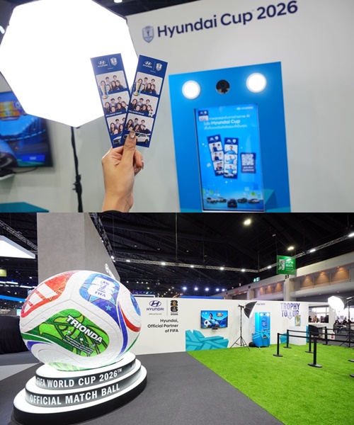 สำหรับบูทฮุนไดในปีนี้ ออกแบบภายใต้คอนเซปต์ “Hyundai Lifestyle Connected Hub” ที่ผสานโลกของยนตรกรรม เทคโนโลยี และไลฟ์สไตล์เข้าด้วยกัน นำกลยุทธ์ Sport Marketing จากธีมระดับโลกของแบรนด์อย่าง “Year of Football” มาสร้างประสบการณ์ใหม่ให้ผู้เข้าชมงาน ด้วยการจัดแสดงลูกฟุตบอลขนาดยักษ์ Trionda ลูกฟุตบอลที่ใช้ในการแข่งขัน FIFA World Cup 26™ อย่างเป็นทางการ ซึ่งสะท้อนพลังของเจ้าภาพทัวร์นาเมนต์ทั้ง 3 ประเทศ นำมาเป็นแลนด์มาร์กของบูท พร้อมมอบโอกาสสุดเอ็กซ์คลูซีฟกับการได้ใกล้ชิดกับถ้วยแชมป์อาเซียน ASEAN Hyundai Cup™ 2026 Trophy ที่นำมาให้แฟนฟุตบอลได้ชมและถ่ายภาพเป็นที่ระลึก ซึ่งเป็นอีกหนึ่งไฮไลต์สำคัญที่สะท้อนบทบาทของฮุนไดในฐานะพันธมิตรของวงการฟุตบอลระดับโลก ซึ่งถือเป็นกีฬาที่เป็นสัญลักษณ์แห่งการเชื่อมโยงผู้คน ตอกย้ำการนำไลฟ์สไตล์มารวมกับนวัตกรรมการเดินทางของฮุนได
