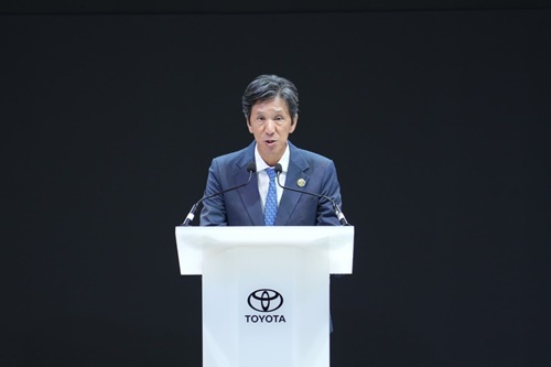 มร.โนริอากิ ยามาชิตะ กล่าวเปิดบูธว่า “ก่อนอื่น ผมขอกล่าวถึงสถานการณ์ของตลาดยานยนต์ในประเทศไทย และผลการดำเนินงานของโตโยต้าในช่วงที่ผ่านมา ในปีที่ผ่านมา ตลาดรถยนต์ของประเทศไทยเริ่มส่งสัญญาณการฟื้นตัวอย่างค่อยเป็นค่อยไป โดยมียอดขายรวมทั้งตลาดอยู่ที่ประมาณ 621,000 คัน เพิ่มขึ้น 8% จากปีก่อนหน้า สะท้อนถึงความเชื่อมั่นของผู้บริโภคที่เริ่มกลับมาอย่างต่อเนื่อง