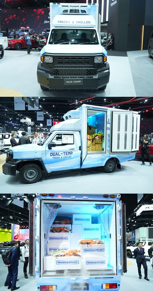 มร.โนริอากิ ยามาชิตะ แนะนำโซนรถเพื่อการพาณิชย์และการใช้งานส่วนบุคคลว่า “ลำดับถัดมา คือ Toyota Hilux Travo และ Toyota Hilux Travo‑e ซึ่งเปิดตัวในปีที่ผ่านมา เช่นเดียวกับ Toyota Land Cruiser FJ ทั้ง Hilux Travo และ Hilux Travo‑e ต่างสะท้อนถึงบทบาทสำคัญของโตโยต้าในการสนับสนุน และพัฒนาอุตสาหกรรมยานยนต์ของประเทศไทย ไม่ว่าจะเป็น ด้านการผลิต การจ้างงาน และการสร้างมูลค่าทางเศรษฐกิจ