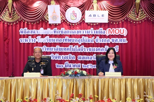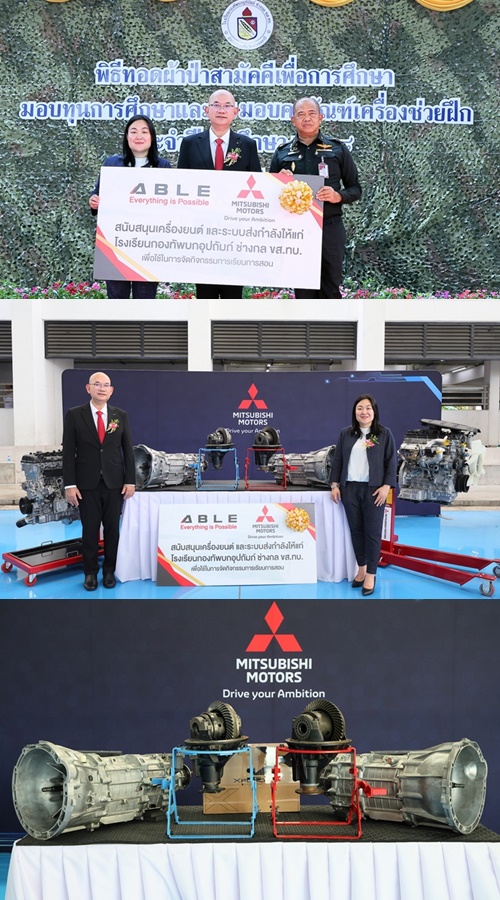 บริษัท มิตซูบิชิ มอเตอร์ส (ประเทศไทย) จำกัด ร่วมกับ บริษัท เอเบิล มอเตอร์สปากเกร็ด จำกัด เดินหน้าเสริมศักยภาพทักษะเชิงช่างในสายอาชีพอย่างต่อเนื่อง ด้วยการมอบเครื่องยนต์และระบบส่งกำลัง ให้แก่ โรงเรียนกองทัพบกอุปถัมภ์ ช่างกล ขส.ทบ. โดยภายในพิธีมี การลงนามบันทึกข้อตกลงความร่วมมือ (MOU) ระหว่างบริษัท เอเบิล มอเตอร์ส ปากเกร็ด จำกัด และ โรงเรียนกองทัพบกอุปถัมภ์ ช่างกล ขส.ทบ. โดยเป็น การบันทึกข้อตกลงความร่วมมือทางวิชาการ ผ่านการจัดการเรียนการสอนหลักสูตรประกาศนียบัตรวิชาชีพ สาขาวิชาช่างยนต์ สาขาวิชายานยนต์ไฟฟ้า และประกาศนียบัตรวิชาชีพชั้นสูง สาขาวิชาเทคนิคเครื่องกล โดยเปิดโอกาสให้นักศึกษาได้ฝึกปฏิบัติงานในสถานประกอบการ ส่งเสริมการเรียนรู้จากประสบการณ์จริง เพื่อสอดรับกับวัตถุประสงค์ในการประสานความร่วมมือในการจัดการอาชีวศึกษา เพื่อผลิตและพัฒนากำลังคนให้สอดคล้องกับพระราชบัญญัติการศึกษาแห่งชาติ ตามนโยบายของรัฐบาล และความต้องการของสถานประกอบการอย่างยั่งยืน