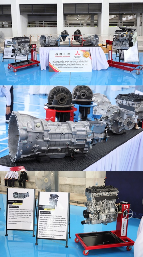 สำหรับพิธีมอบเครื่องยนต์และระบบส่งกำลัง ให้แก่ โรงเรียนกองทัพบกอุปถัมภ์ ช่างกล ขส.ทบ. ในครั้งนี้ ยังได้มี การลงนามบันทึกข้อตกลงความร่วมมือ (MOU) ระหว่าง บริษัท เอเบิล มอเตอร์ส ปากเกร็ด จำกัด และ โรงเรียนกองทัพบกอุปถัมภ์ ช่างกล ขส.ทบ. พร้อมด้วย การบริจาคเครื่องยนต์และระบบส่งกำลัง ประกอบด้วย เครื่องยนต์ดีเซลเทอร์โบรหัส 4N16 รุ่นใหม่ล่าสุด ซึ่งเป็นขุมพลังขับเคลื่อนของ นิว มิตซูบิชิ ไทรทัน เครื่องยนต์ 4N15 ชุดเกียร์ธรรมดา รุ่น R6M5A และชุดเฟืองท้าย ควบคู่ไปกับ การฝึกอบรมภาคปฏิบัติ ซึ่งจัดขึ้นโดยความร่วมมือระหว่าง ผู้เชี่ยวชาญจากสถาบันการศึกษาและฝึกอบรม มิตซูบิชิ มอเตอร์ส ประเทศไทย และ ช่างเทคนิคจาก บริษัท เอเบิล มอเตอร์ส ปากเกร็ด จำกัด เพื่อให้มั่นใจว่านักศึกษาจะได้รับการสอนที่มีคุณภาพสูงสุดและนำไปประยุกต์ใช้ในการทำงานจริงได้อย่างมีประสิทธิภาพ