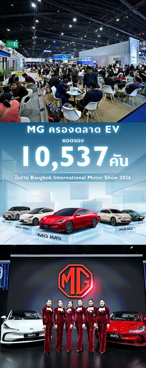 เอ็มจี สร้างสถิติครั้งใหม่ในงานบางกอก อินเตอร์เนชั่นแนล มอเตอร์โชว์ 2026 ด้วยยอดจองรวมสูงถึง 10,537 คัน สะท้อนกระแสตอบรับอย่างท่วมท้นจากผู้บริโภคในทุกเซกเมนต์