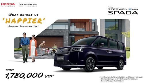 ผลิตและนำเข้าจากประเทศญี่ปุ่น วางจำหน่ายในราคา 1,780,000 บาท หลังจากจัดแสดงและเปิดให้จองสิทธิ์เป็นเจ้าของก่อนใครในงาน Motor Expo 2025 เมื่อปลายปีที่ผ่านมา ซึ่งได้รับกระแสตอบรับดีเยี่ยมด้วยยอดจองสิทธิ์ล่วงหน้ากว่า 800 สิทธิ์ ตอกย้ำการเป็นรถ MUV สไตล์ Box Shape ที่พร้อมตอบโจทย์ Active Lifestyle ของกลุ่มครอบครัว Multi-gen ยุคใหม่ ด้วยสมรรถนะการขับขี่ของระบบขับเคลื่อนฟูลไฮบริด e:HEV – The EXCITING Hybrid ที่ทั้งแรงและประหยัดน้ำมัน พร้อมด้วยฟังก์ชันเพื่อการใช้งานที่ครบครัน ทั้งหมดนี้ สะท้อนความมุ่งมั่นในการนำเสนอผลิตภัณฑ์ใหม่ที่เติมเต็มไลน์อัปรถยนต์ของฮอนด้าให้ครอบคลุมทุกเซกเมนต์ เป็นเจ้าของได้ง่ายขึ้นด้วยข้อเสนอพิเศษดอกเบี้ยเริ่มต้น 1.39%* ฟรีประกันภัย 1 ปี พร้อมฟรี Honda Ultimate Care และรับประกันแบตเตอรี่ไฮบริด 10 ปี และรับประกันระบบไฮบริดทั้งระบบ 5 ปี ไม่จำกัดระยะทาง พร้อมทยอยส่งมอบลูกค้าทั่วประเทศตั้งแต่วันนี้ เพื่อให้ทุกครอบครัวได้สัมผัสประสบการณ์การเดินทางที่เต็มไปด้วยความสุขและคุณค่ามากยิ่งขึ้น New Honda STEP WGN e:HEV SPADA WHAT BRINGS US ‘HAPPIER’ …ยิ่งมากคน ยิ่งมากความสุข