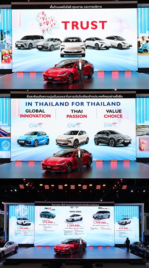 บริษัท เอสเอไอซี มอเตอร์ ซีพี จำกัด และ บริษัท เอ็มจี เซลส์ (ประเทศไทย) จำกัด ผู้ผลิตและผู้จำหน่ายรถยนต์เอ็มจีในประเทศไทย เปิดตัว MG IM5 ยนตรกรรมซีดานไฟฟ้าระดับพรีเมียมในฐานะ “The 1st Premium Intelligent e-Sedan” ที่พัฒนาขึ้นสำหรับผู้บริโภคที่มองหายนตรกรรมไฟฟ้าที่สะท้อนตัวตน และมองหาเทคโนโลยีที่ไม่ยึดติดกับกรอบเดิม ภายใต้แนวคิด “I AM WHO I AM” ผสานรวมความลงตัวของ ELEGANCE – ELECTRIC – ENTELLIGENT สู่การเป็นสปอร์ตคูเป้ซีดานที่มอบประสบการณ์การขับขี่ที่ปราดเปรียว ด้วยระยะทางวิ่งกว่า 860 กิโลเมตร ถือเป็นรถ EV อีกหนึ่งรุ่นที่วิ่งได้ไกลที่สุดในคลาสด้วยราคาพิเศษ 1,449,900 บาท พร้อมการรับประกันแบตเตอรี่แรงเคลื่อนสูง ชุดมอเตอร์ขับเคลื่อน และชุดควบคุมมอเตอร์ขับเคลื่อนตลอดอายุการใช้งาน (EV LIFETIME WARRANTY) อีกทั้งภายในงาน บางกอก อินเตอร์เนชันแนล มอเตอร์โชว์ ครั้งที่ 47 เอ็มจี ยังได้นำยนตรกรรมหลากหลายรุ่นมาจัดแสดง พร้อมข้อเสนอพิเศษอีกมากมาย เพื่อมอบความคุ้มค่าและประสบการณ์ที่เหนือระดับให้กับลูกค้าที่สนใจเป็นเจ้าของรถยนต์ เอ็มจี